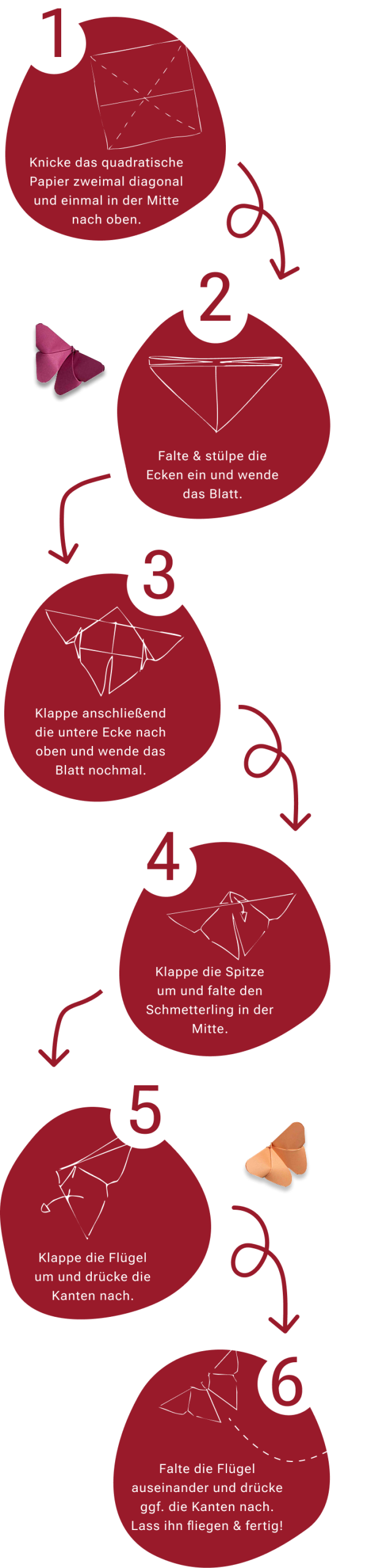 - Klappe die Spitze um und falte den Schmetterling in der Mitte.