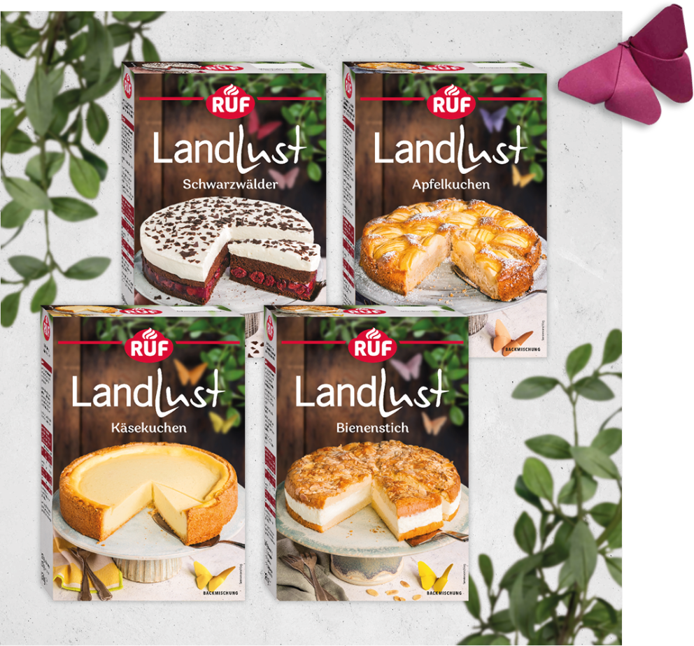 Aus der Zusammenarbeit zwischen Landlust und RUF ist eine besondere Produktidee entstanden: Vier Backmischungen, die klassische Kuchenlieblinge neu interpretieren – mit hochwertigen Zutaten, traditionellen Rezepturen und gleichzeitig moderner Alltagstauglichkeit.
